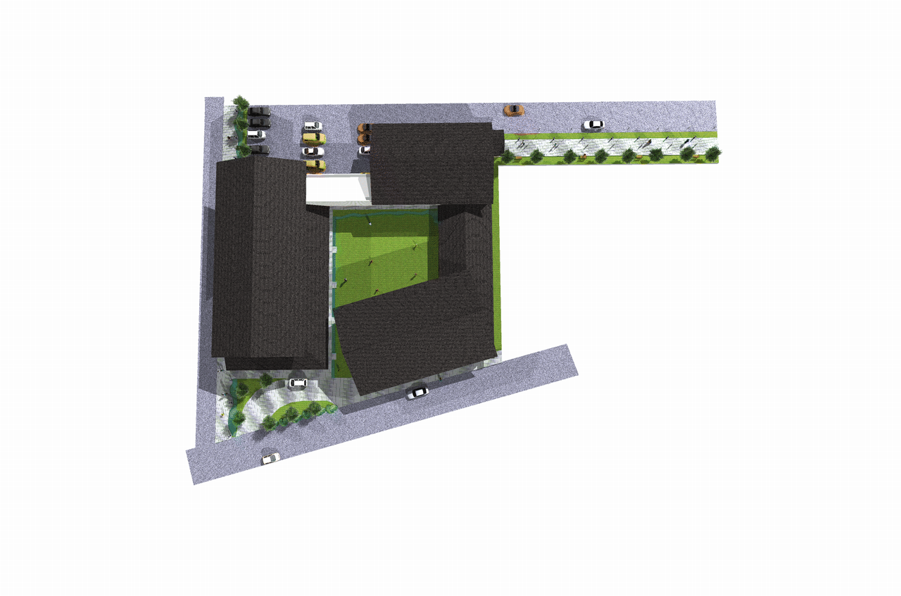 資料1〜5までや歴史性を踏まえ、提案したものが左図です。これも時間がないため、サッシ等は書いていませんが、ある程度雰囲気はわかると思います。