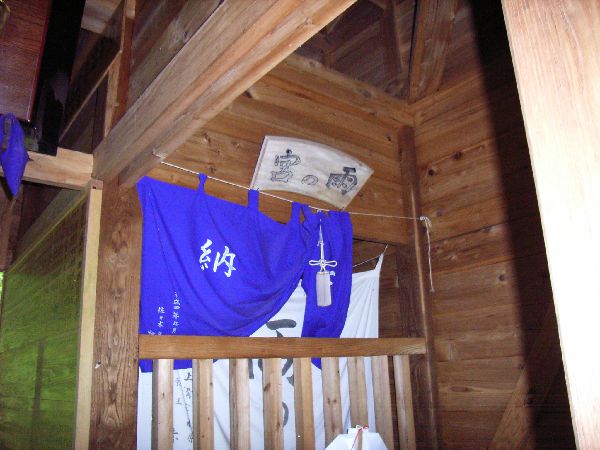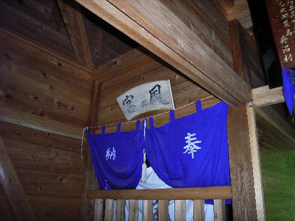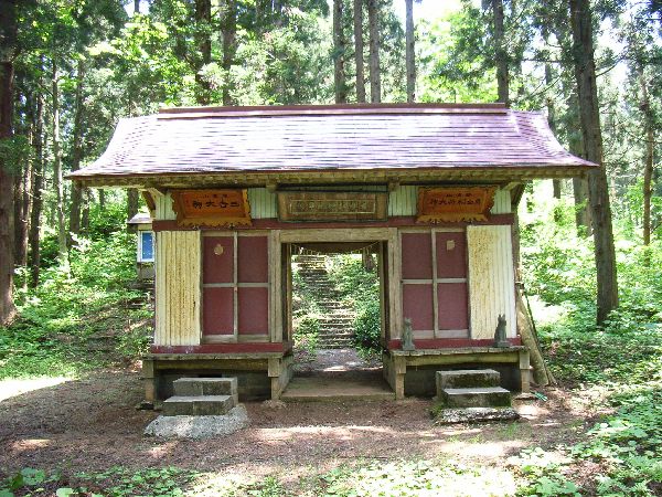 | (4)お宮− | 山門内部に他の神様(神社)が合祀されています。旧南外村の勝軍山神社では向かって右側が黒白稲荷神社、左側が三吉神社が祀っています。又旧大森町の釣瓶山八幡神社では向かって右側が雨の宮、左側が風の宮を祀っていて周辺地域からも信仰の対象となり雨乞い祈願などが行われていたそうです。