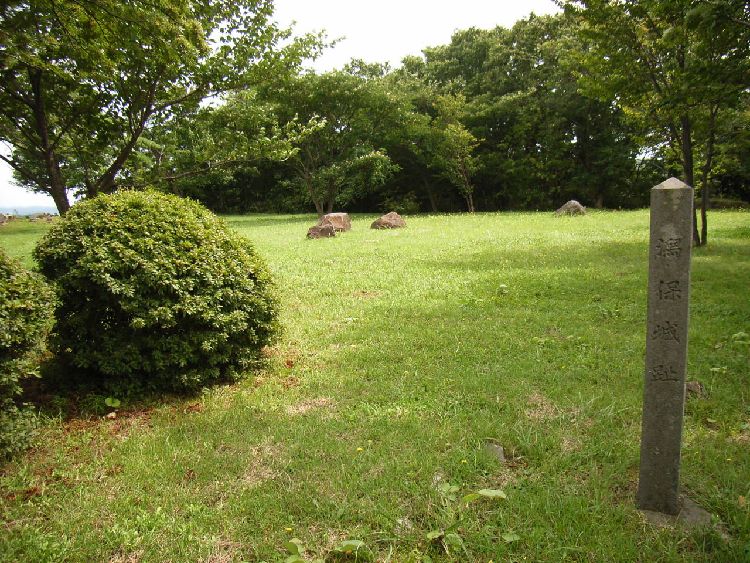 その形状孔雀の如し、故に名付くという。」と記されている。・・・(後略) 西目町教育委員会」とあります。本丸からの眺望は素晴らしく当時の領内だけでなく遠く日本海まで一望出来、潟保神社を初め龍田神社、金毘羅神社などの石碑が並べられています。本丸と隣接して一段下がった処にも平場があり合わせるとかなりの広さがあります。現在では公園として整備されていますが土塁らしきものも一部見られます。