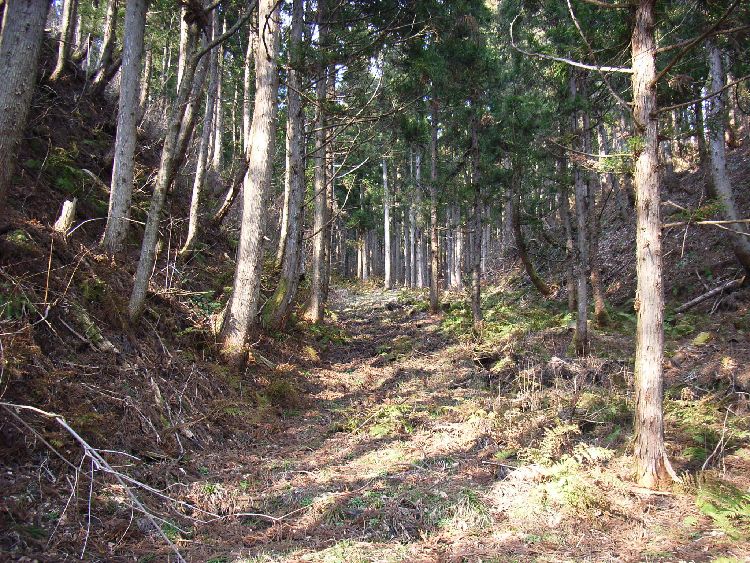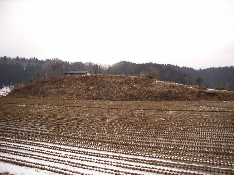 旧亀田街道は萱ヶ沢集落を出て大台入口のバス停付近で左折します。そのまま山の方へ進むと「由利長根」と言われる峠道へ入ります。その手前にある高さ5〜6m程の小さい岡が「