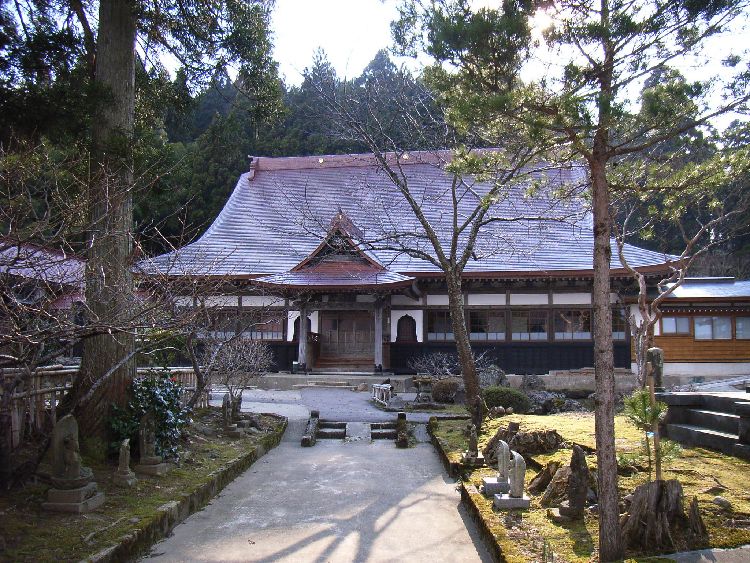 永泉院の創建は鎌倉時代と云われ、熊野の権現薬師如来像を勧請しました。葛岡の集落からは僅かに離れていますが、葛岡金峰神社と関係が深いと考えられます。創建年代は異なりますが、同じ熊野神社に関係が深いところかも神仏混交だったのかも知れません。背後の山は薬師山とも言われているので修験にも関係が深いと思われます。江戸時代初期には他の亀田藩の寺院と同様に政策的に曹洞宗に改宗開山し、芋川周辺では永泉寺、鷲泉寺と並び「芋川の三泉寺」と呼ばれていました。現在の本堂は明治19年に建ってられたものです。