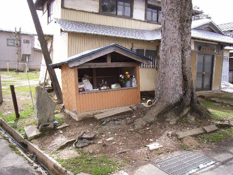 地蔵堂は深井集落の境に安置されています。隣接する大木の根が盛り上がりお堂が少し傾いているようですが、お供え物などもあり信仰は続いているようです。お堂の中には数体のお地蔵様が安置されています。外には庚申塔もあり一種の宗教施設のような感じがします。後ろには集落の集会場もあり、色々な意味で重要な場所だということが分かります。