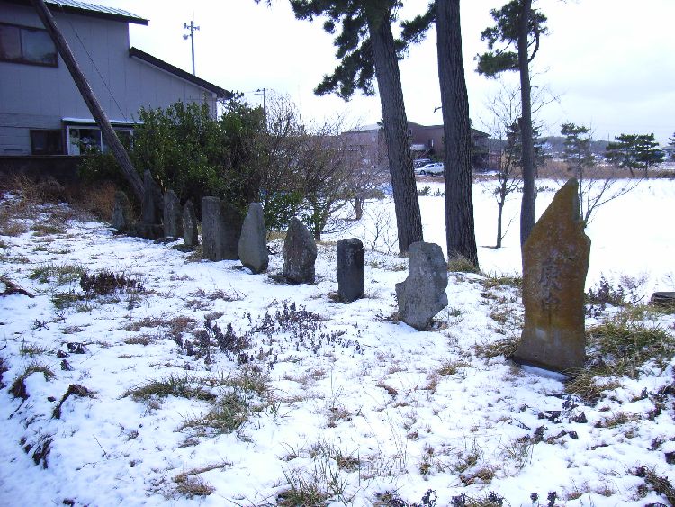 三十三番観音碑は男鹿街道が開設後文化2年(1805)太田玄碩が建立しました。追分三叉路を基点として集落の出入り口や三叉路などの道路の結束点に配置されているように思えます。庚申塔などと一緒に安置されている場面も多く見受けられ信仰の対象になっていた事が分かります。現在は風化が進んではっきりと文字などは読めませんが小さな祠の中に納まっ案内の柱が立っています。