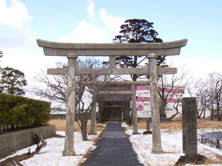 八龍神社の創建は大同2年(807)と云われ船越の防潮水門近くに鎮座しています。八郎潟に近接し、船着場がある事から、この場所は神聖視されていたと思われます。特に漁業関係者の信仰は深く境内には「魚類供養塚」が多数奉納されています(男鹿市指定文化財)。又、案内板には紀行家の菅江真澄も八龍神社を訪れ「八郎という者が難蔵法師との争いに負け、大蛇となってこの湖水に入ったという伝説を記す」と書かれている通り、八郎潟には田沢湖、十和田湖を含めた、壮大な龍伝説が伝わっています。その為、男鹿半島や八郎潟周辺には、八龍神社を始め龍伝説関係の神社が点在します。