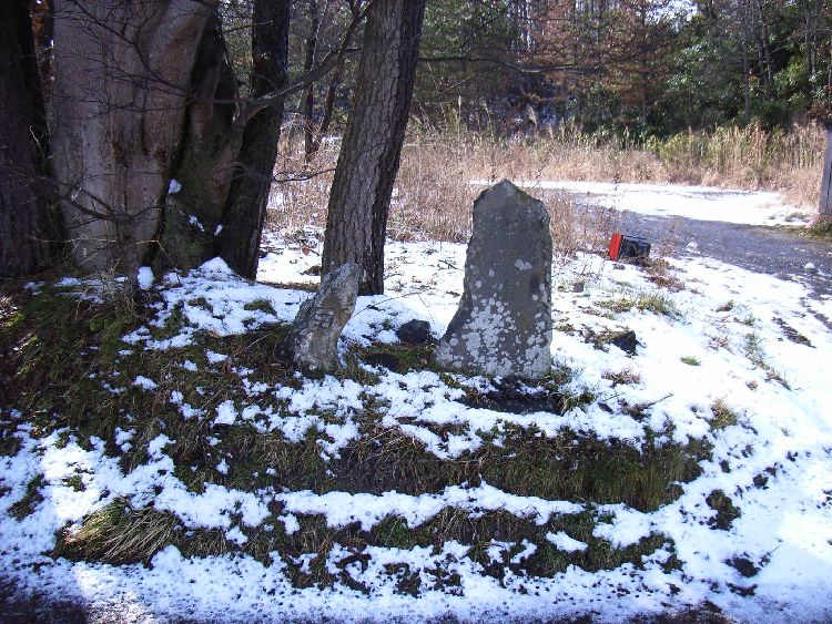 上出戸の集落でも出入り口には庚申塔が安置されています。現在ではお参りする人もいないのか、多少荒廃した印象を受けました。多少塚状に盛り上がり、大きな松の木の根元にあります。ここを起点として日本海に抜ける道があったと思われ、道祖神などの道の神と習合していたと思われます。