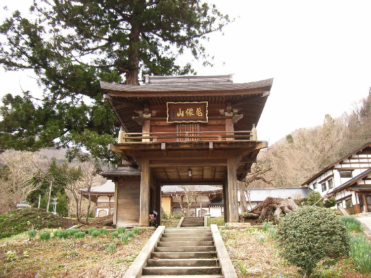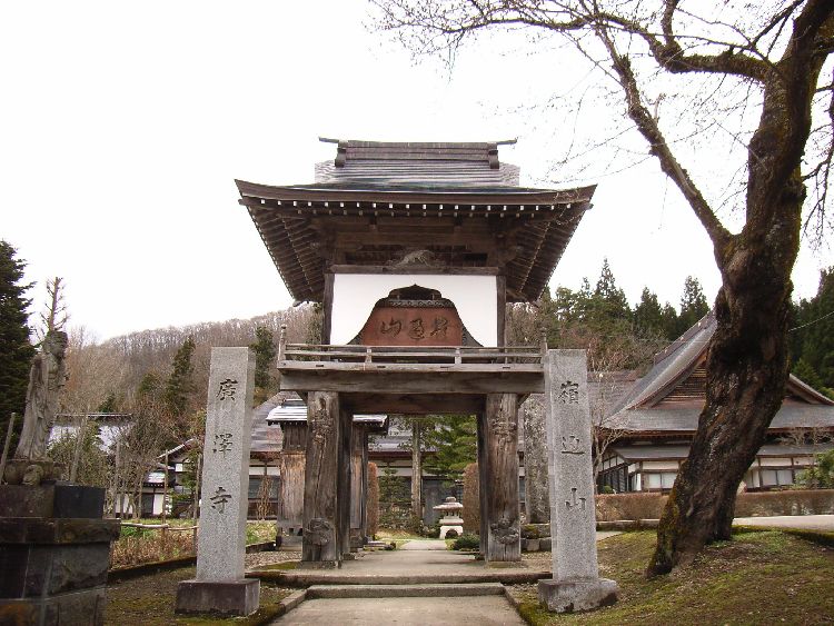 は案内板によると「・・・・(前略)広沢寺は当時の稲庭城主小野寺弥太郎道広が檀郡寺開基となり現在地に開基した。長禄3年(1459年)本堂の裏に道広の墓石が苔生し各字が破蝕しているが現存している。」とあります。創建は慈覚大師とも云われる古寺で県南の雄小野寺氏の縁の寺院にふさわしい広大なものです。現在の本堂は寛政元年(1789)に建てられたものでかなり赴きがある建物です。鐘楼門は4脚門で入母屋の屋根で構成されています。規模はあまり大きくはありませんが柱などもかなり太材を使っており重厚な印象を受けます。