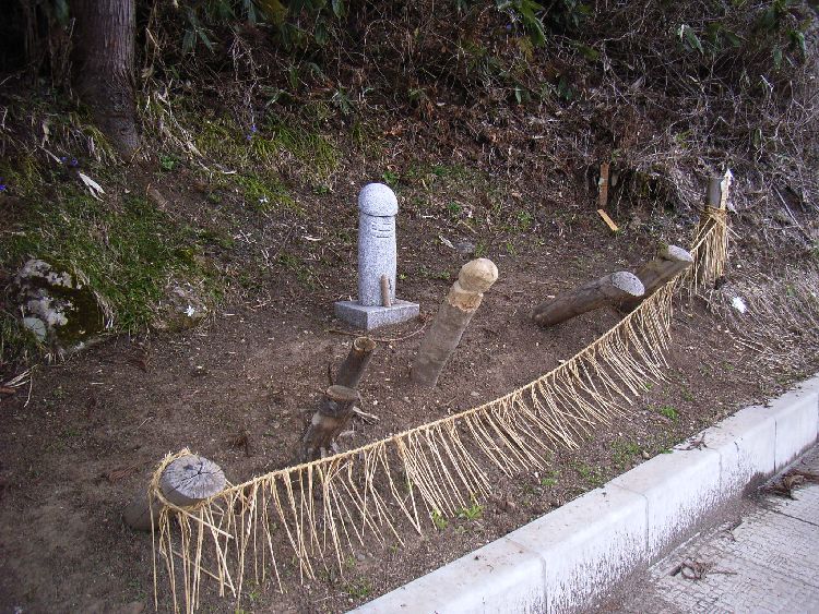 | 鍾馗様概要: 旧南外村周辺では「鍾馗様」と呼ばれています。中荒沢集落と比べると体部分がなく面だけが奉納されています。お堂の中には歴代の面と思われるものが2面あり合計3つ奉納されています。又、謂れは分かりませんでしたがお堂の中には複数の木で作られた小刀がありました。又、この集落では男性神は男根として一緒に祀られており、当時は歴代の木製の男根が数多く奉納されていたそうです。現在では石造の男根を建立し、新しいものは作らないとの事。これら役200年前以上から続けられていたそうです。当時、鍾馗様も他地域と同じように大型だったそうですが、明治初期に他の地域から来た駐在に気持ち悪いからと相当数焼き捨てられ、残った木面は美術的、骨董的価値があった為、盗難が相次いだそうです。