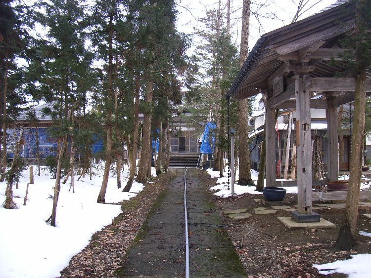 戊辰戦争と昭和26年(1951)の火災でほとんどの建物や寺宝が焼失しています。正面の山門(仁王門)は平成12年(2000)に再建したもので、入母屋、銅板葺き、正面軒唐破風、三間一戸、桁行3間、張間2間、八脚楼門、外壁は真壁造白漆喰仕上げ、上層部には高欄が廻り、中央には「宝蔵山」の山号額、下層部左右には秋田県十文字町(現横手市)出身の彫刻家である皆川嘉左エ門が彫刻した仁王像が安置されています。山号:宝蔵山。宗派:曹洞宗。本尊:釈迦如来。